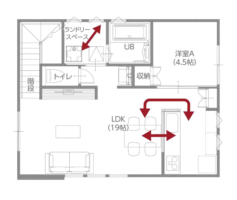 家事ラク動線採用で暮らしやすさも